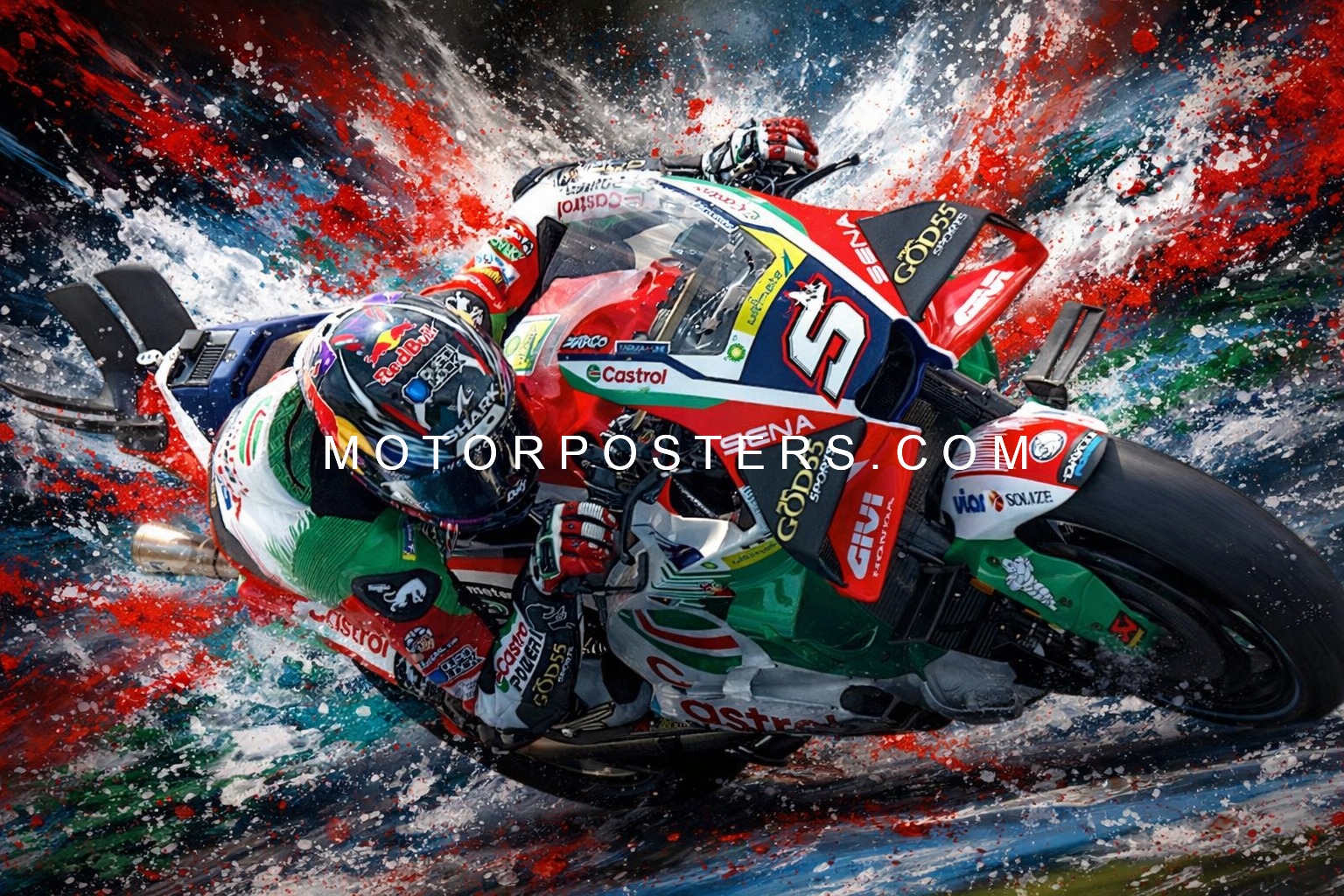 Crafted from polycotton fabric, the poster is both lightweight and durable, offering a smooth texture and vibrant colors that truly stand out. Perfectly capturing Johan Zarco’s bold essence, the detailed artwork will instantly add a touch of excitement to any space.