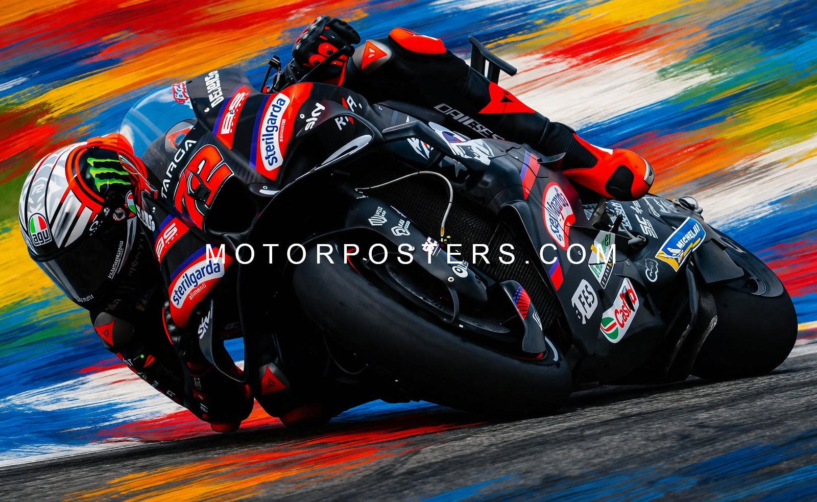 The Marco Bezzecchi poster is a stunning tribute to one of racing’s most exciting talents. Crafted for enthusiasts, this A2-sized decoration transforms any space into a vibrant showcase of motorsport passion.