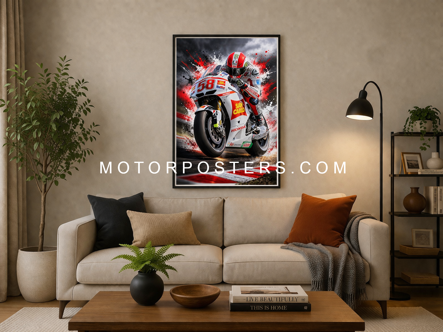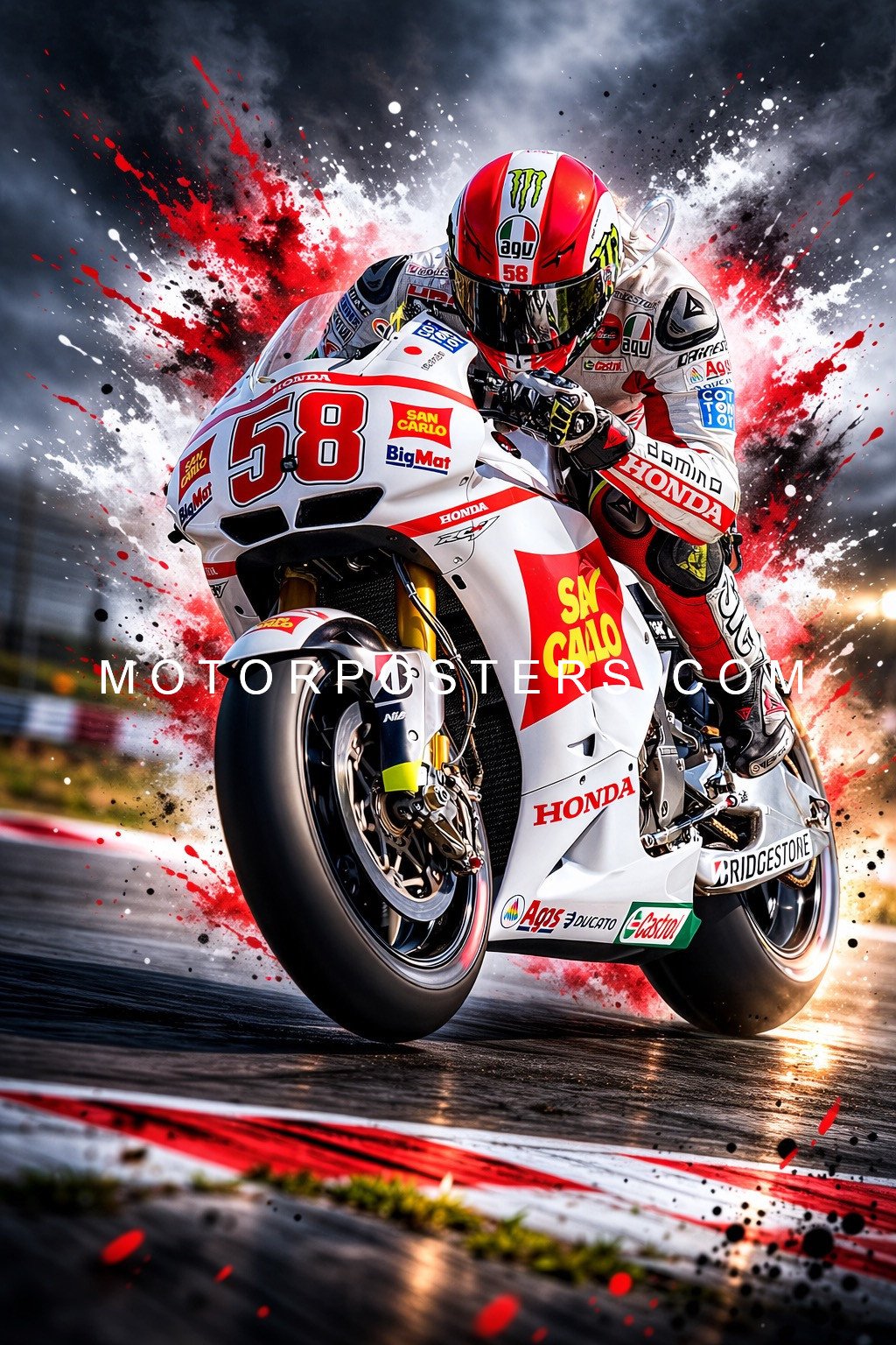 This A2-sized picture of Marco Simoncelli is the perfect way to honor the legendary racer. Crafted on a high-quality polyester cotton canvas, this artwork radiates durability while capturing every intricate detail of Simoncelli’s inspiring legacy.