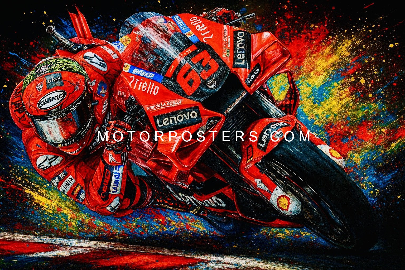 Whether it’s enhancing your wall decor or gifting to a fellow racing aficionado, this Pro Bagnaia image is designed to impress. Its rich details and vibrant colors bring the energy of MotoGP right into your space.