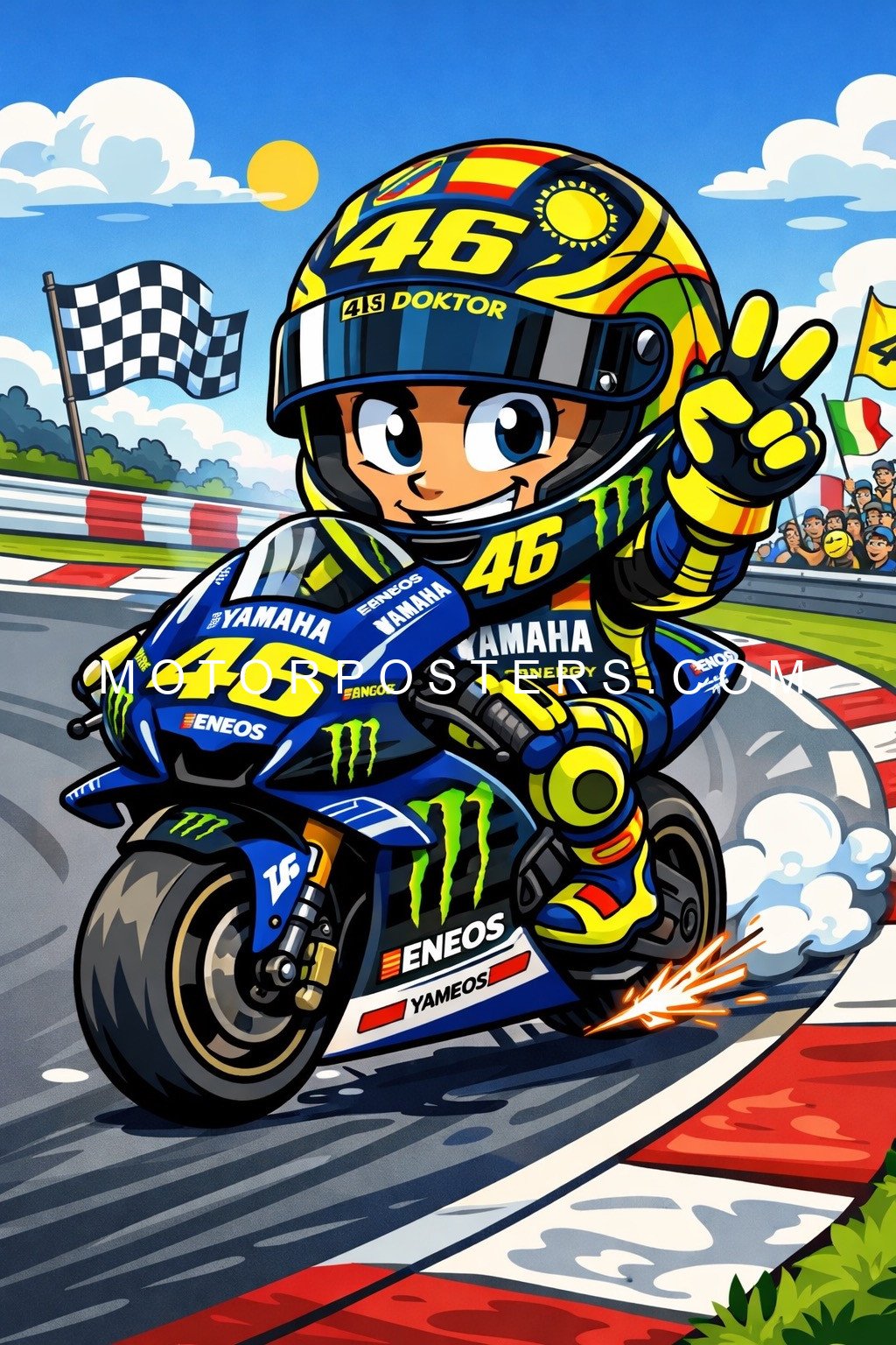 This premium poster captures the essence of Valentino Rossi’s remarkable journey, making it a must-have for fans and motorsport enthusiasts alike. Its vivid colors and detailed design bring his legacy to the forefront.