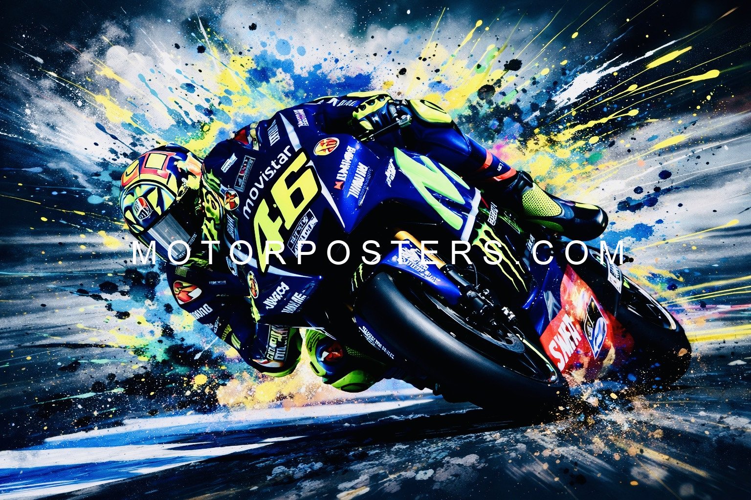 The Valentino Rossi A2 poster is not just a decoration; it’s a statement of your passion for MotoGP and your admiration for a champion like Rossi. Lightweight and easy to hang, this piece is ideal for transforming walls into tributes to motorsport greatness.